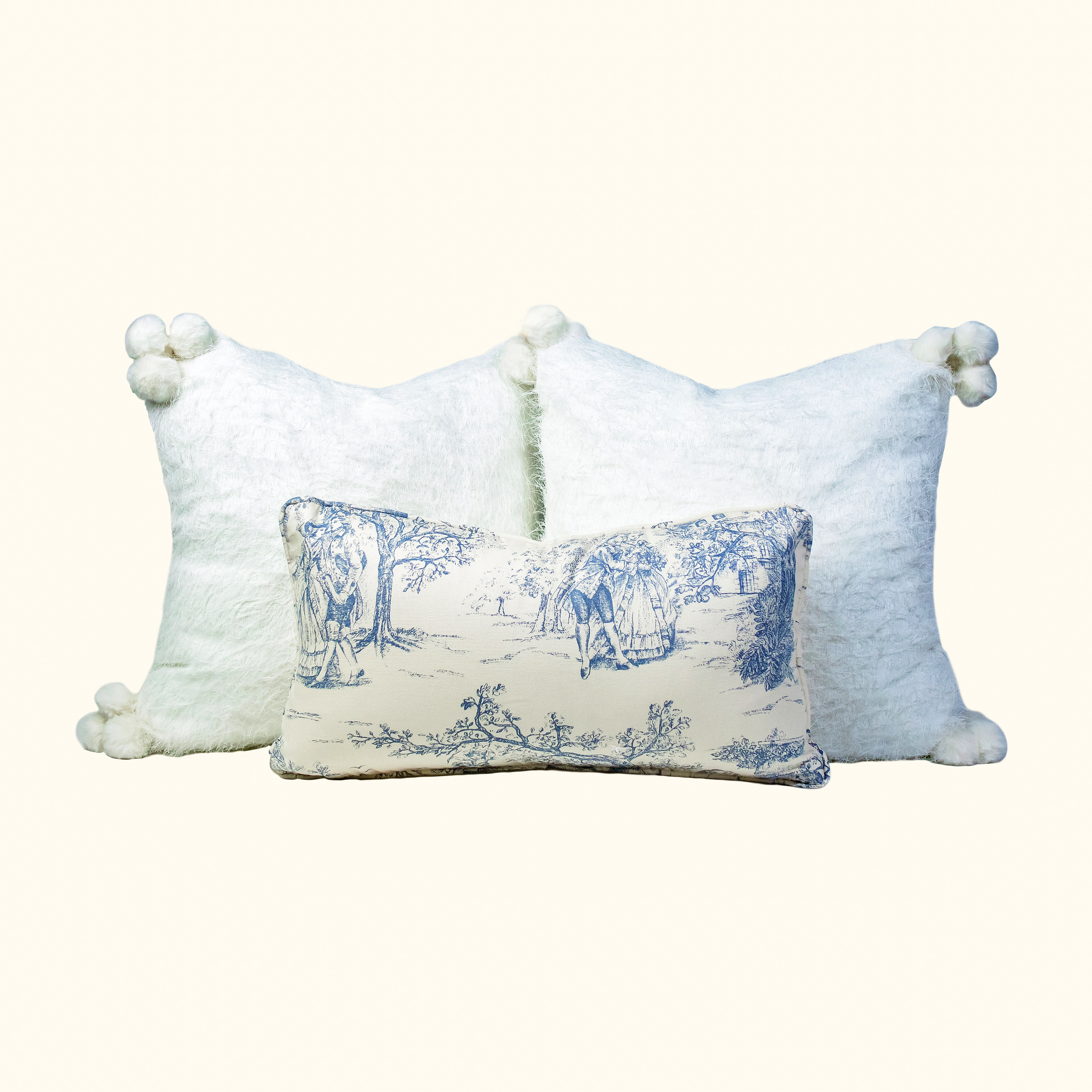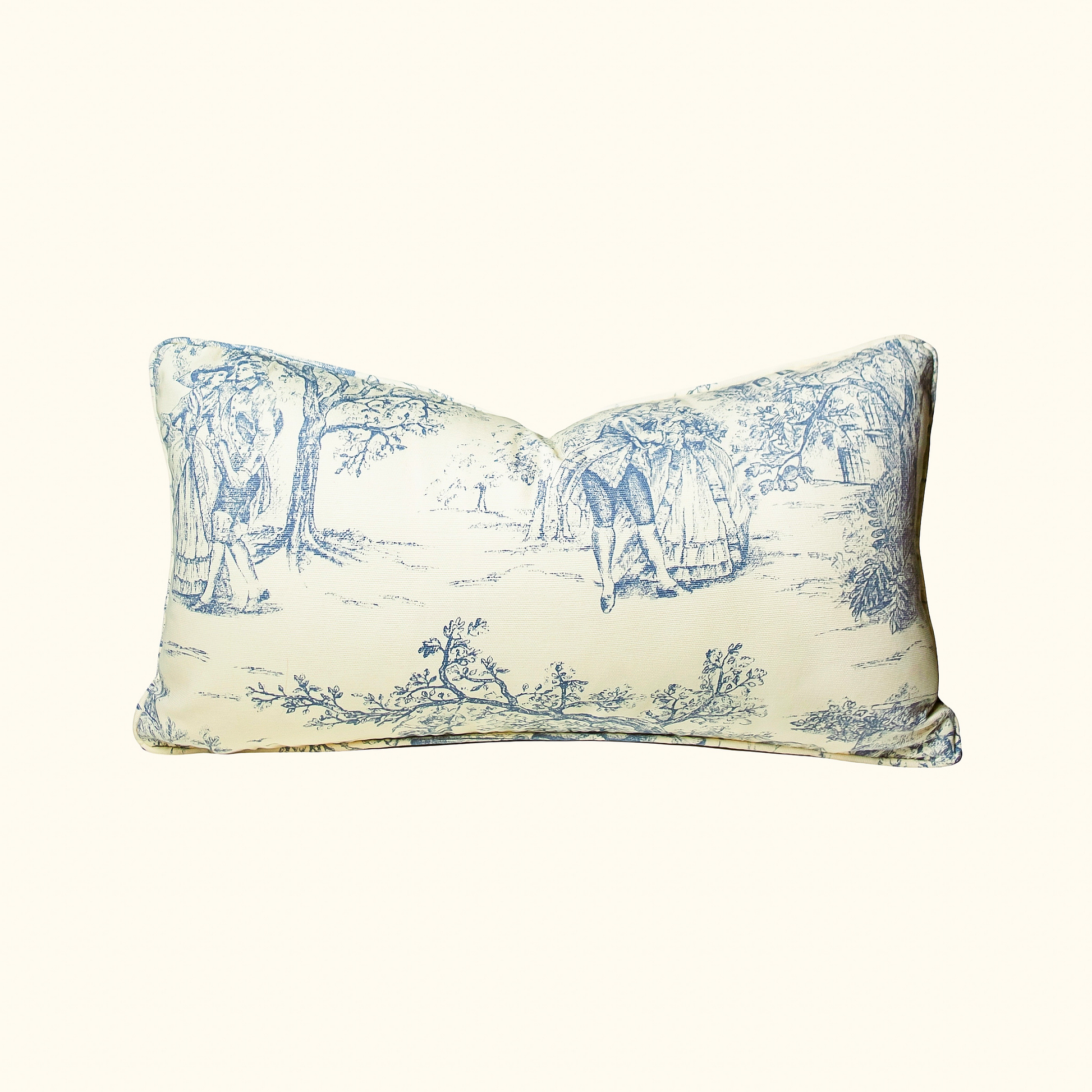 Step back into an era of elegance with Promenade Royale, a pillow that captures the grace of 18th-century French aristocracy. Featuring refined toile de Jouy patterns in soothing blue and white, this design invites timeless sophistication into your home. Perfect for creating a serene and luxurious ambiance in any space.