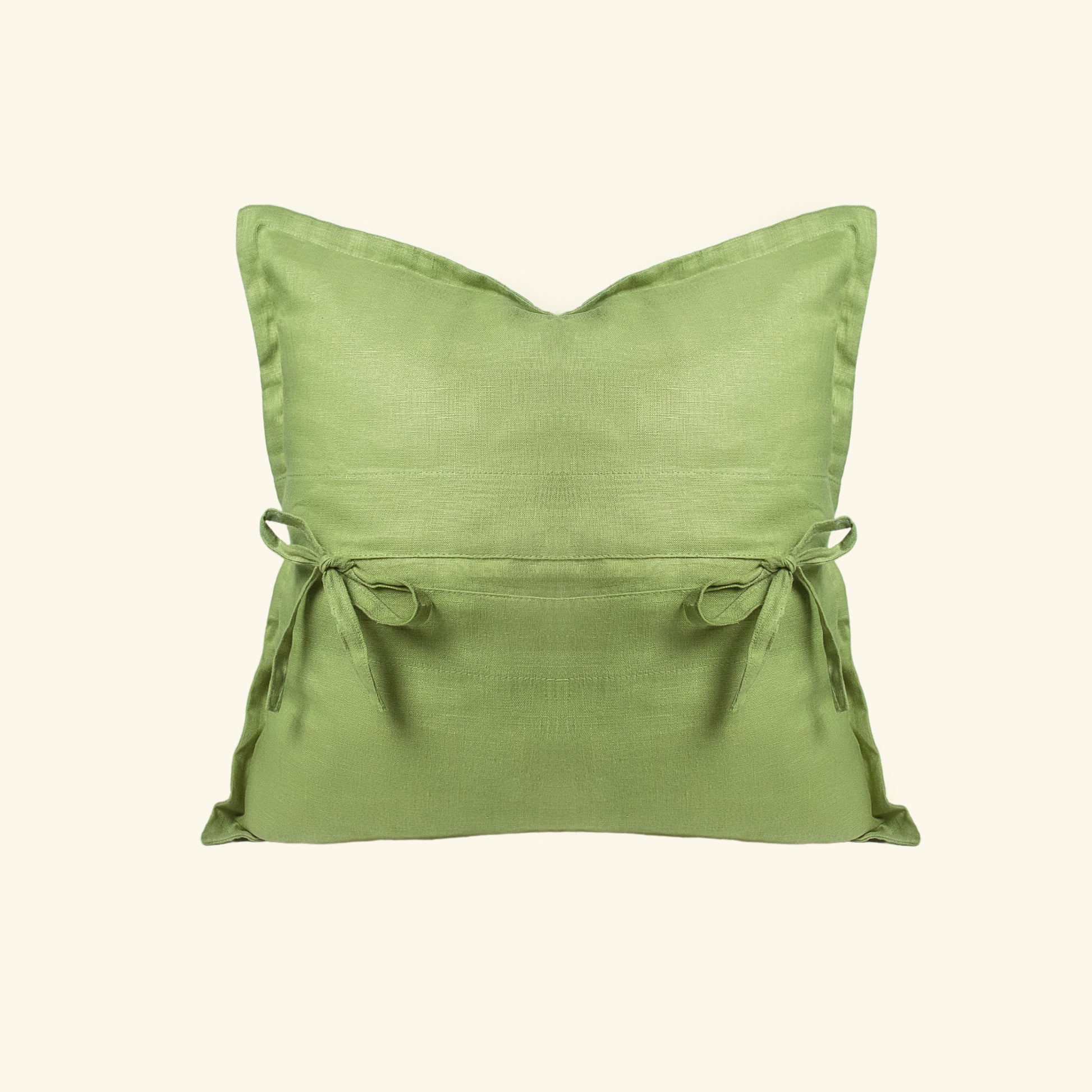 > Features a two-sided option for versatile styling. The front side showcases a toile de Jouy design, ideal as a main accent. The back is a beige linen, perfect for minimalist or understated decor.